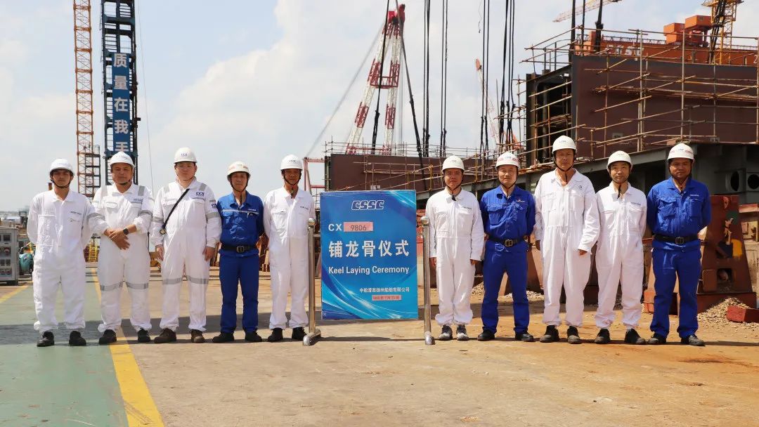 7月23日,中船澄西为中信金融租赁有限公司建造的6号8.45万吨干散货船基准分段上船台搭载。