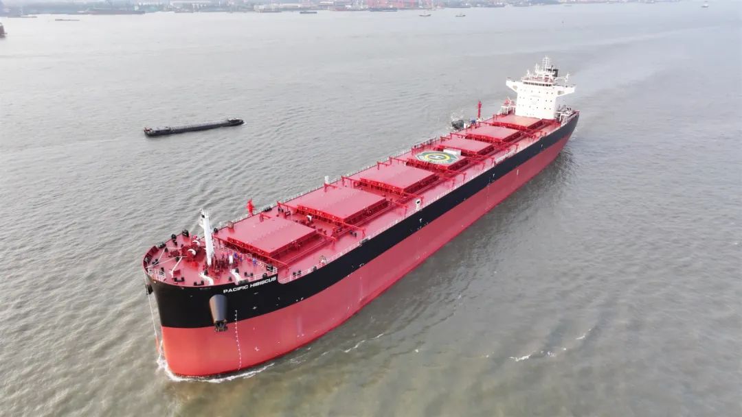 “PACIFIC HIBISCUS”轮是中船澄西为华夏金租批量建造8.2万吨级散货船中的第二艘,也是该公司造船2号线“总段搭载+坞内合拢”建造方针的主建船型。总段进坞合拢期间,通过持续优化系列船建造工艺,有效提升总段建造与吊装定位效率,显著缩短总段吊装定位时间。此外,项目团队以“持续改善”为核心,积极推进开展全流程全领域精益管理工作;建立柔性拉动式标准计划体系,通过工序前移和“商品化转序”,不断缩短建造周期,总段吊装周期缩短至8天,主船体贯通缩短至10天。